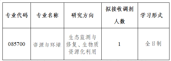 我院2026年拟接收硕士研究生资源与环境专业调剂考生,如下表1所示: