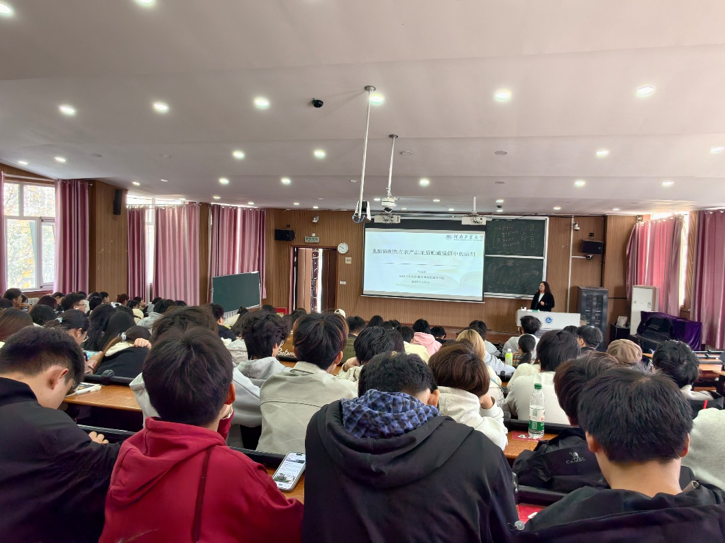 报告中,吕好新博士以 “校友+研究者” 的双重身份,围绕乳酸菌制剂保鲜技术,结合常见农产品案例,讲解技术原理与实际应用,分享科研中攻克难题的经历;用翔实的实验数据和实际应用案例,展示乳酸菌制剂在延长农产品货架期、减少产后损耗、保障食品安全等方面的显著效果,让在场学生深刻理解该技术对农业产业发展的实际价值,有效拉近了课堂知识与行业实践的距离。