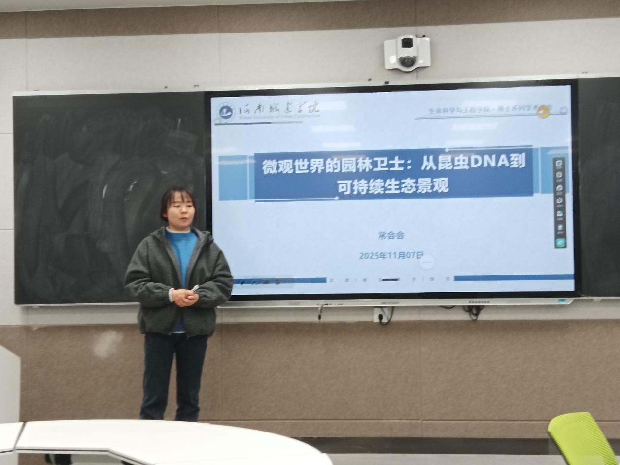 (通讯员 匡旭)为帮助2025级新生深入理解专业内涵、前瞻学科前沿,11月7日上午,生命科学与工程学院“博士讲坛”第七期在6号楼B207教室顺利举行。常会会博士以《微观世界的园林卫士:从昆虫DNA到可持续生态景观》为题,为园林专业全体新生带来一场内容丰富、视角前瞻的专题讲座。