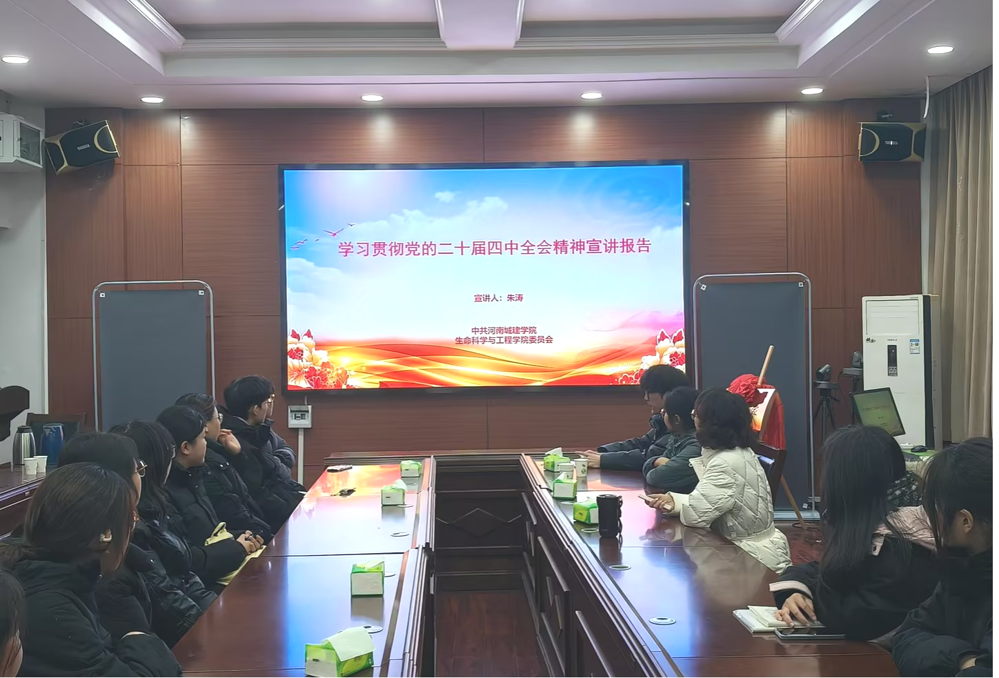 (通讯员 丁欢欢)为深入学习贯彻党的二十届四中全会精神,12月25日下午,生命科学与工程学院副院长朱涛在7号楼A328会议室作专题宣讲报告。生科学院40余名学生党员和入党积极分子参加了此次宣讲学习。