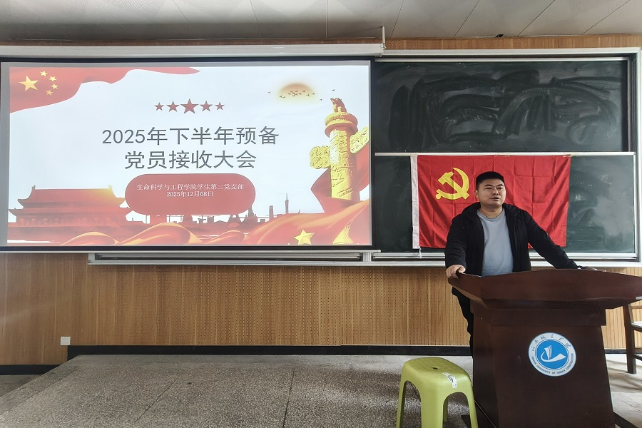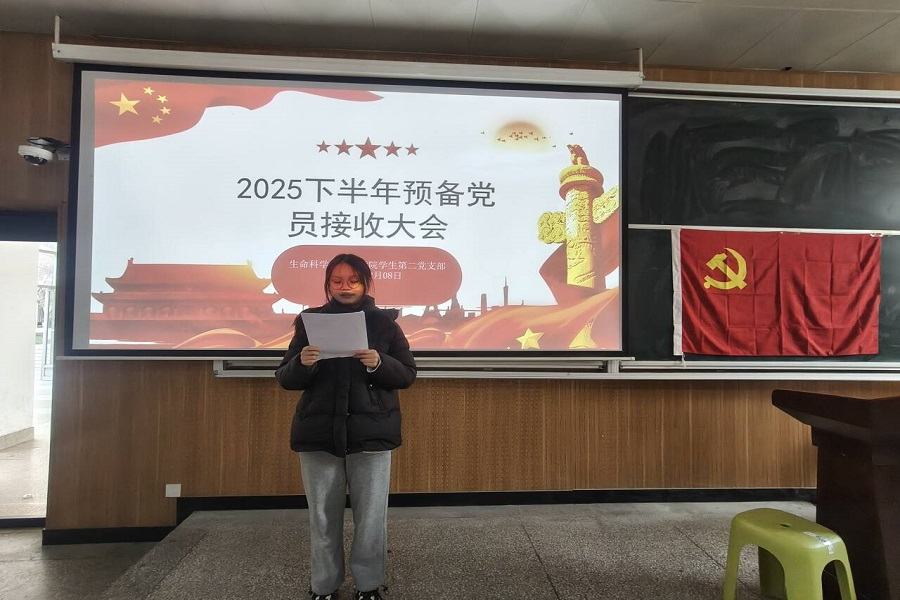 (通讯员 龚乐乐)为深入学习贯彻习近平新时代中国特色社会主义思想,严格落实新时代党的建设总要求,切实做好党员发展工作。2025年12月8日,生科学院学生第二党支部在6#C114召开2025年下半年预备党员接收大会,本次会议由学生第二党支部书记龚乐乐主持,全体学生党员参加。