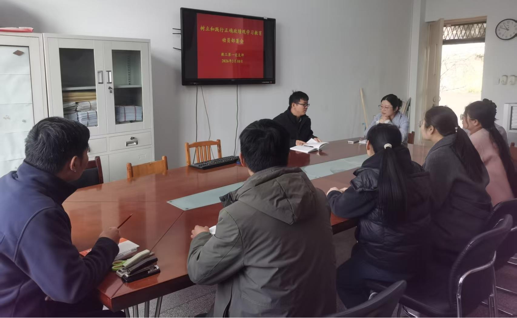 朱玉涛详细阐述了此次学习教育的重要意义,要求支部全体党员深入学习贯彻习近平总书记关于树立和践行正确政绩观的重要论述,认真开展学习研讨,夯实思想基础。要坚持个人自学与集中学习相结合,切实做到学深悟透、融会贯通。全体党员教师需深刻领会“功成不必在我、功成必定有我”的精神实质,秉持实事求是、求真务实的态度,坚持以师生为中心,将教书育人、服务师生的实际成效作为评价工作的重要准则。