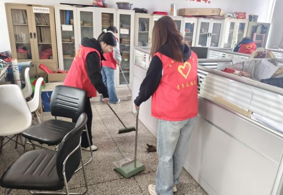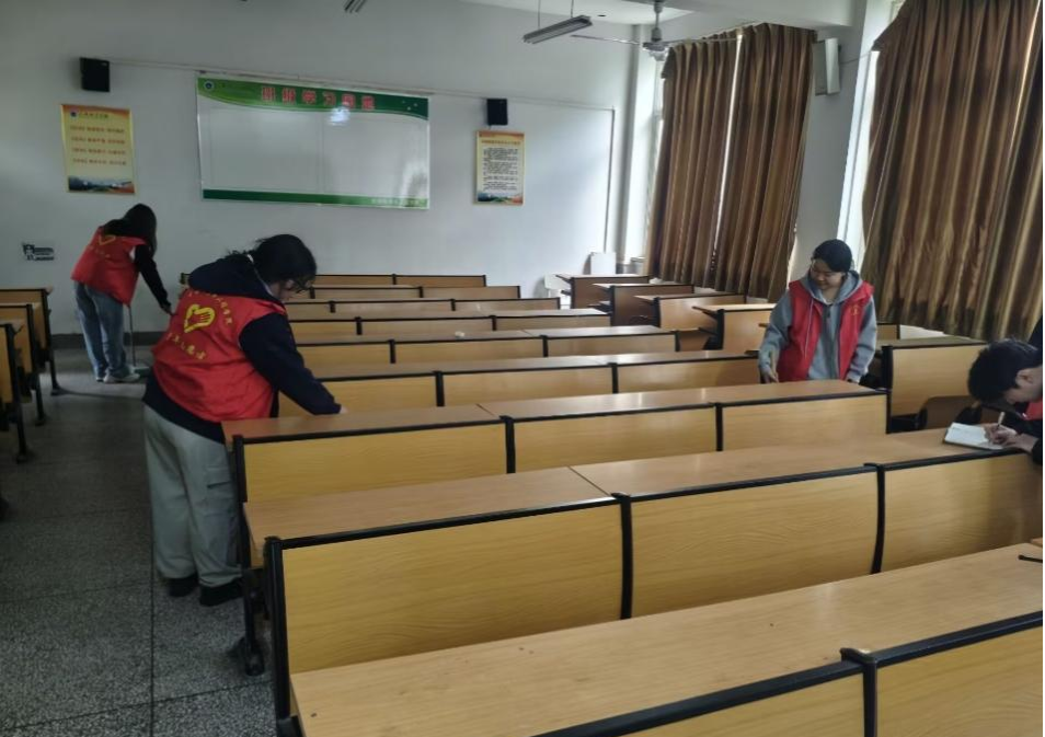 活动现场,一抹抹“志愿红”穿梭在楼宇之间。志愿者们手持清洁工具,分工明确、配合默契。他们不放过任何一个卫生死角:从A座走廊的窗台缝隙,到B座教室的桌椅板凳,再到C座公共区域的地面杂物,都被清理得干干净净。汗水浸湿了衣衫,灰尘沾满了鞋袜,但大家脸上洋溢着劳动的喜悦。经过数小时的辛勤付出,六号楼焕然一新,201会议室窗明几净,整洁的环境赢得了过往师生的一致好评。