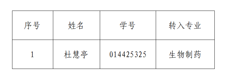 根据《河南城建学院本科生转专业管理办法》(校政教〔2025〕95号)及《生命科学与工程学院转专业工作实施方案》要求,经过对学生期末成绩复核、学院转专业工作小组面试打分、综合评定后,共有1名学生符合转专业接收条件,拟同意转入学生名单公示如下: