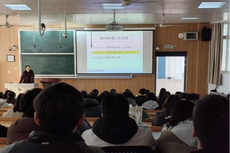会上,洪军围绕毕业实习安排与毕业论文(设计)要求,系统解读了各项任务的时间节点、具体内容和注意事项,帮助学生进一步明确流程、强化落实意识。王莲哲强调,毕业实习与毕业论文(设计)是大学学习生涯的重要收官环节,时间紧、任务重,需科学规划、高效推进,并对全体毕业生提出三点要求:一要立足文献,精准选好课题;二要严守标准,确保成果质量;三要坚守诚信,端正学术学风。